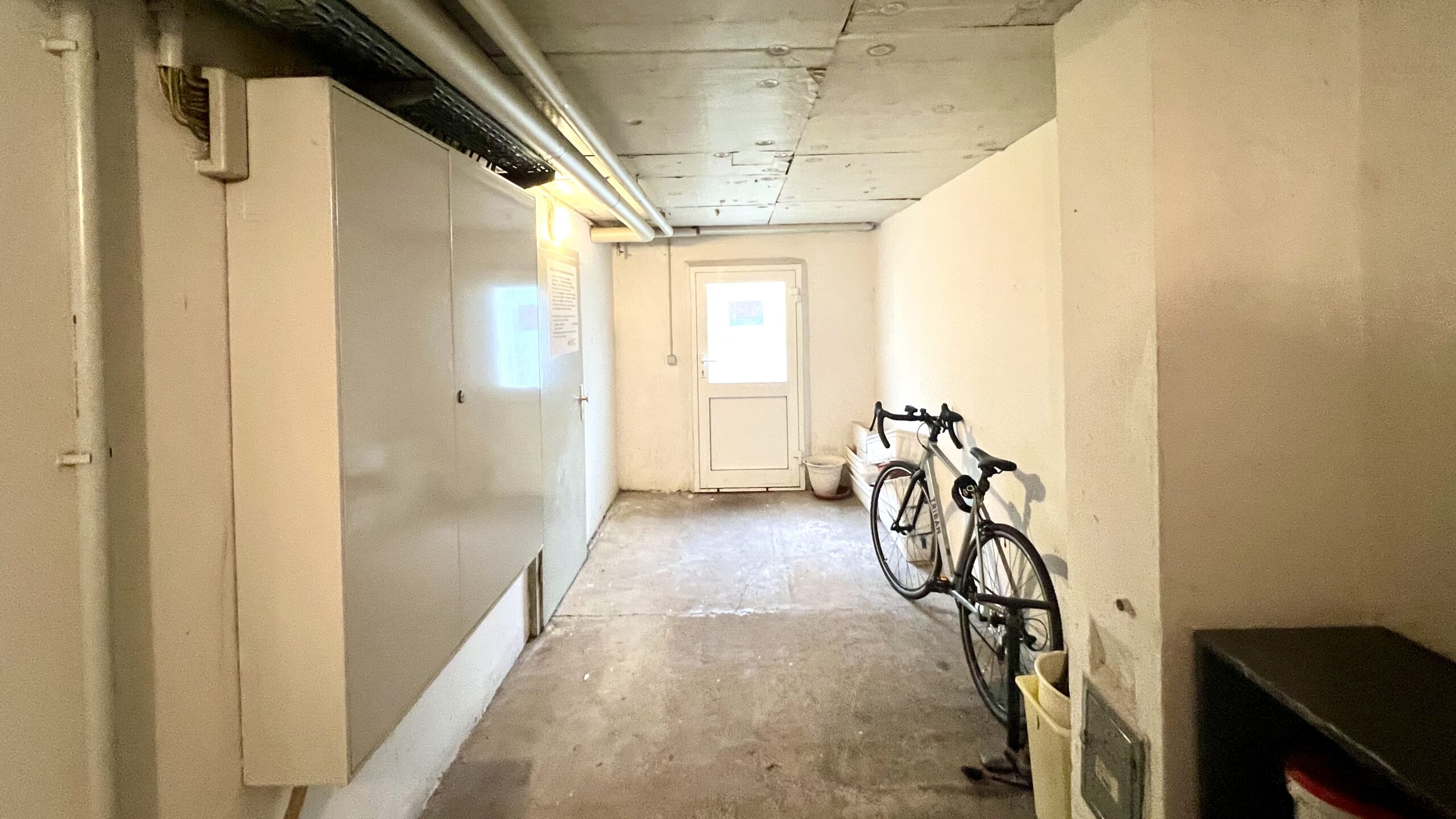 Der Keller verfügt über einen gemeinschaftlichen Bereich, der über einen Kellerausgang mit der Hausrückseite verbunden ist. So ist es bei Renovierungen möglich, das Material erst einmal im Trockenen abzustellen.